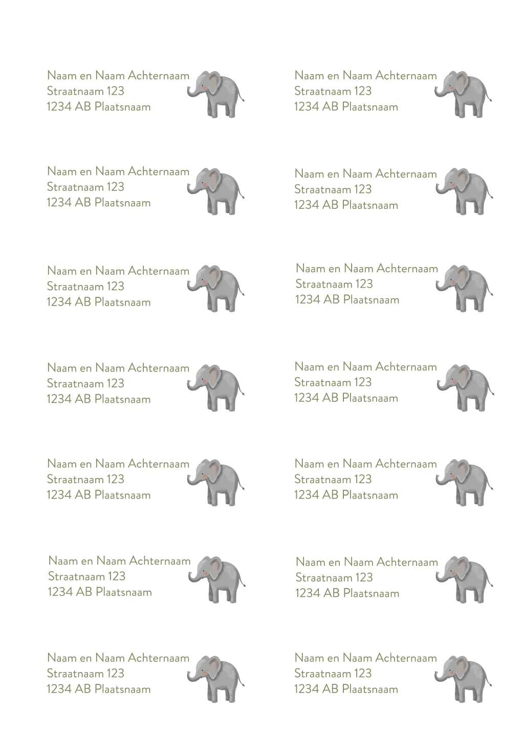 Adresstickers met een olifantje