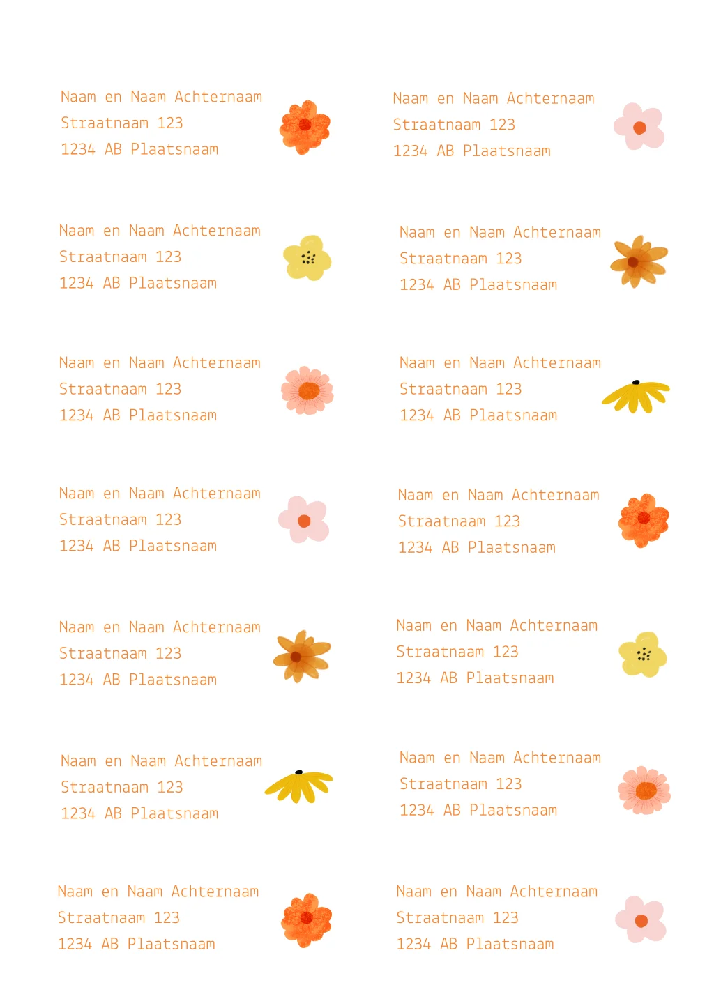 Adresstickers met roze, gele en oranje bloemen