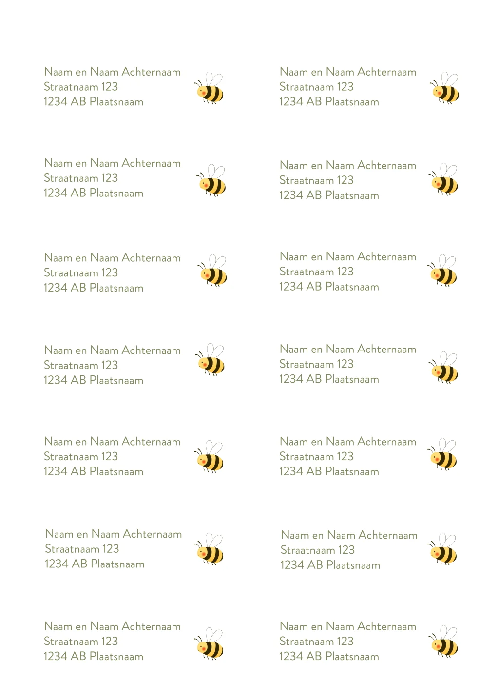Vrolijke adresstickers met een bijtje, perfect passend bij jullie geboortekaartje