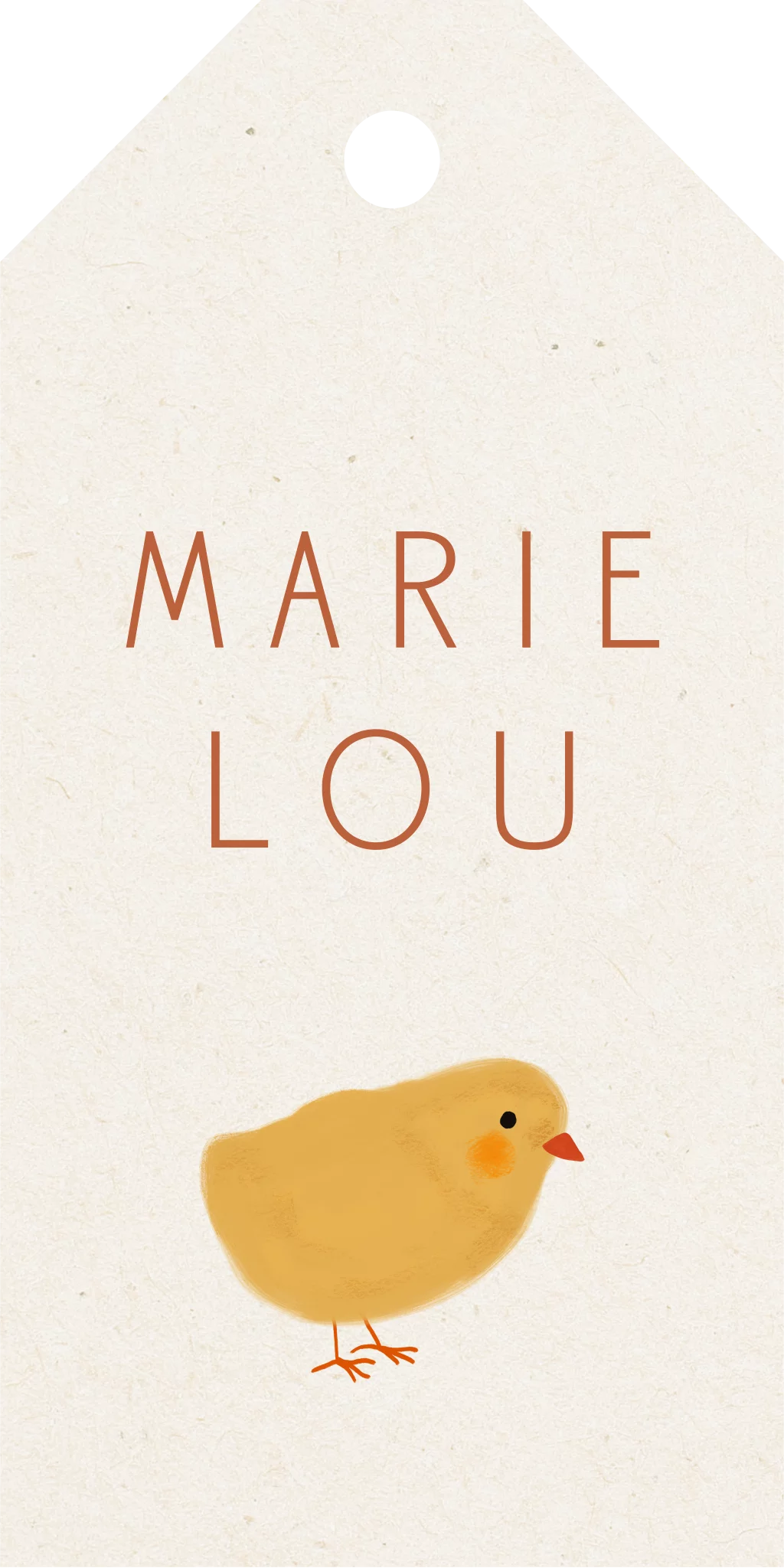 Dit label heeft schuine randen aan de bovenkant en een handig gaatje zodat je het label met een touwtje of lintje ergens aan vast kunt maken.