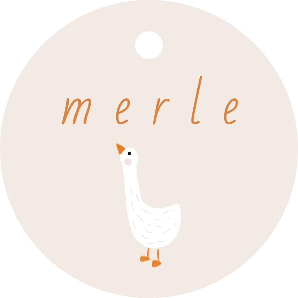 Lief rond doopsuiker label met de naam van je kindje en een baby gansje.