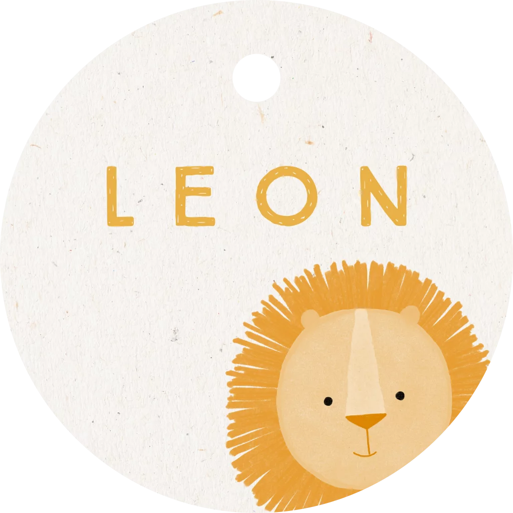 Lief rond labeltje met een leeuwtje. Super tof om te gebruiken voor het doopsuiker of bijvoorbeeld een traktatie. Door het gaatje kun je het labeltje gemakkelijk ergens aan vastmaken met een touwtje of een lintje.