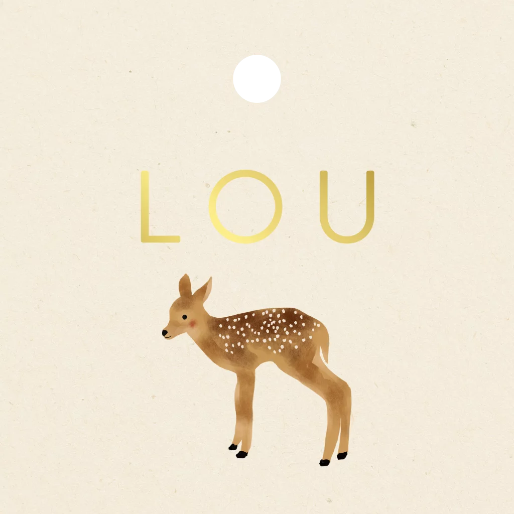 Vierkant doopsuiker label met een hertje en foliedruk
