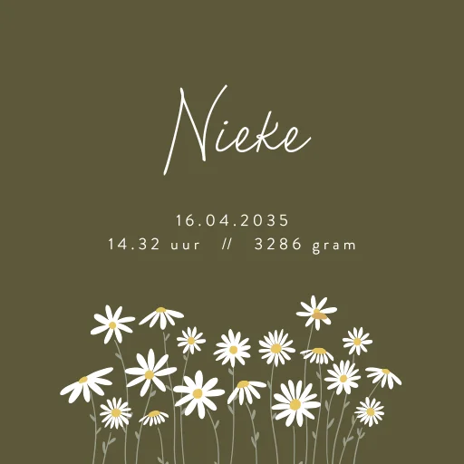 Donkergroen geboortetegeltje met madeliefjes