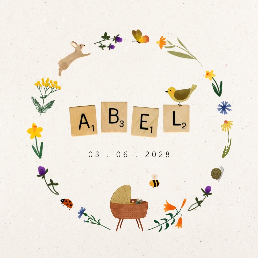 Geboortetegeltje met bloemenkrans voor een lentekindje