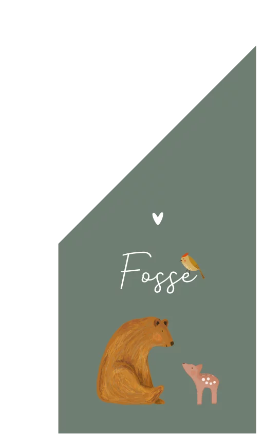 Donkergroene kioskvlag met een beer, hertje, vogel en een hartje.