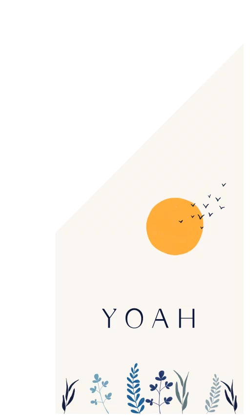 Geboorte kioskvlag met takjes, blaadjes, de zon en vogels.
