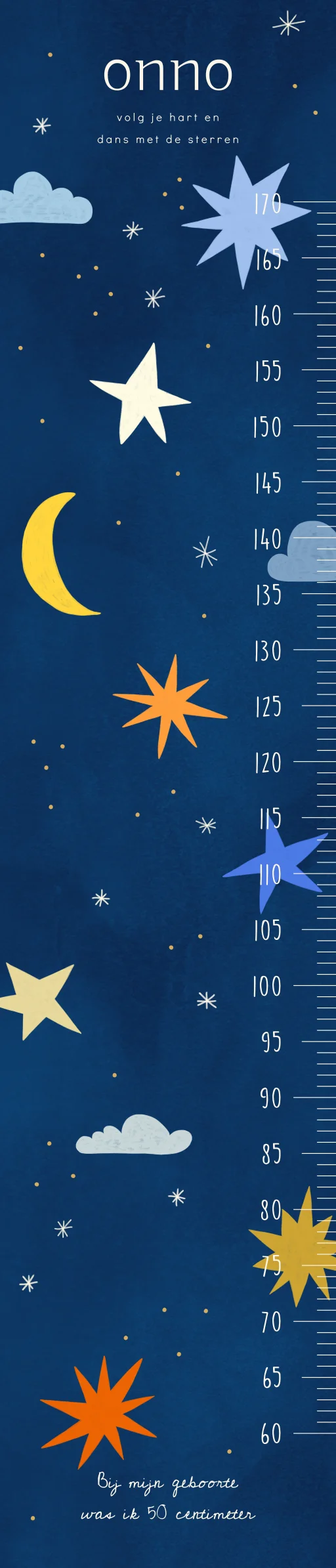 Een super toffe groeimeter, helemaal in de stijl van het geboortekaartje.