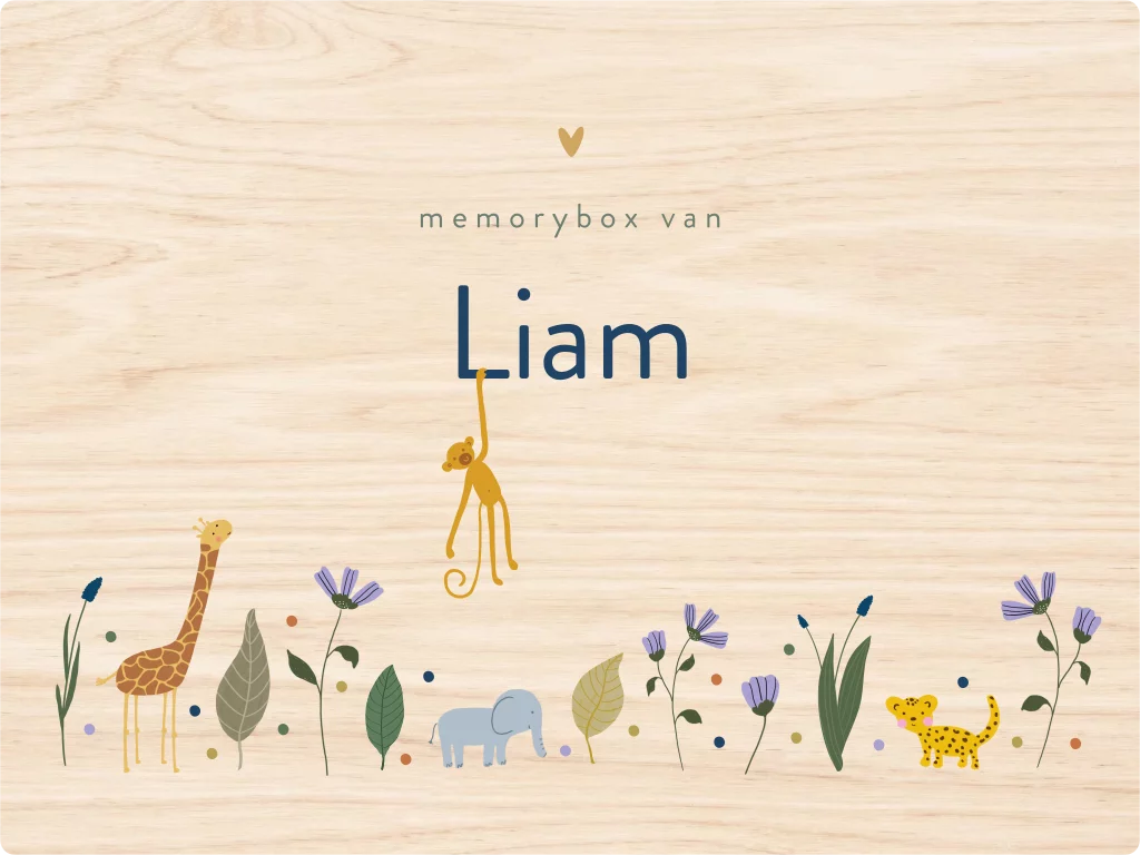 Memorybox met een jungledieren en bloemen.