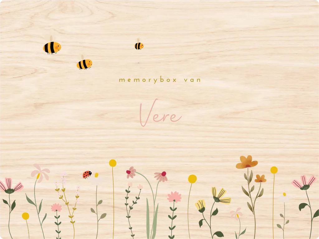 Memorybox met bloemen, bijtjes en een lieveheersbeestje. LET OP! De kleur wit kan niet gedrukt worden! // VERE