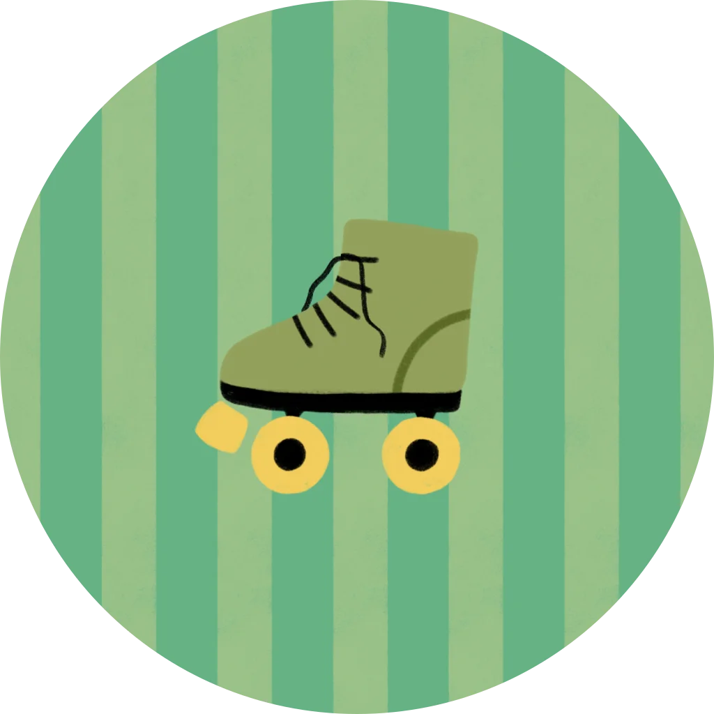 Sluitsticker met een groen rolschaatsje - vel met 25 stickers