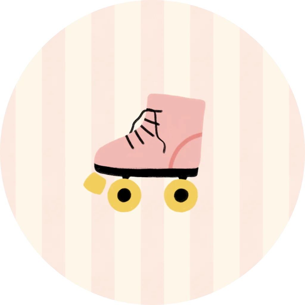 Sluitsticker met een roze rolschaatsje - vel met 25 stickers