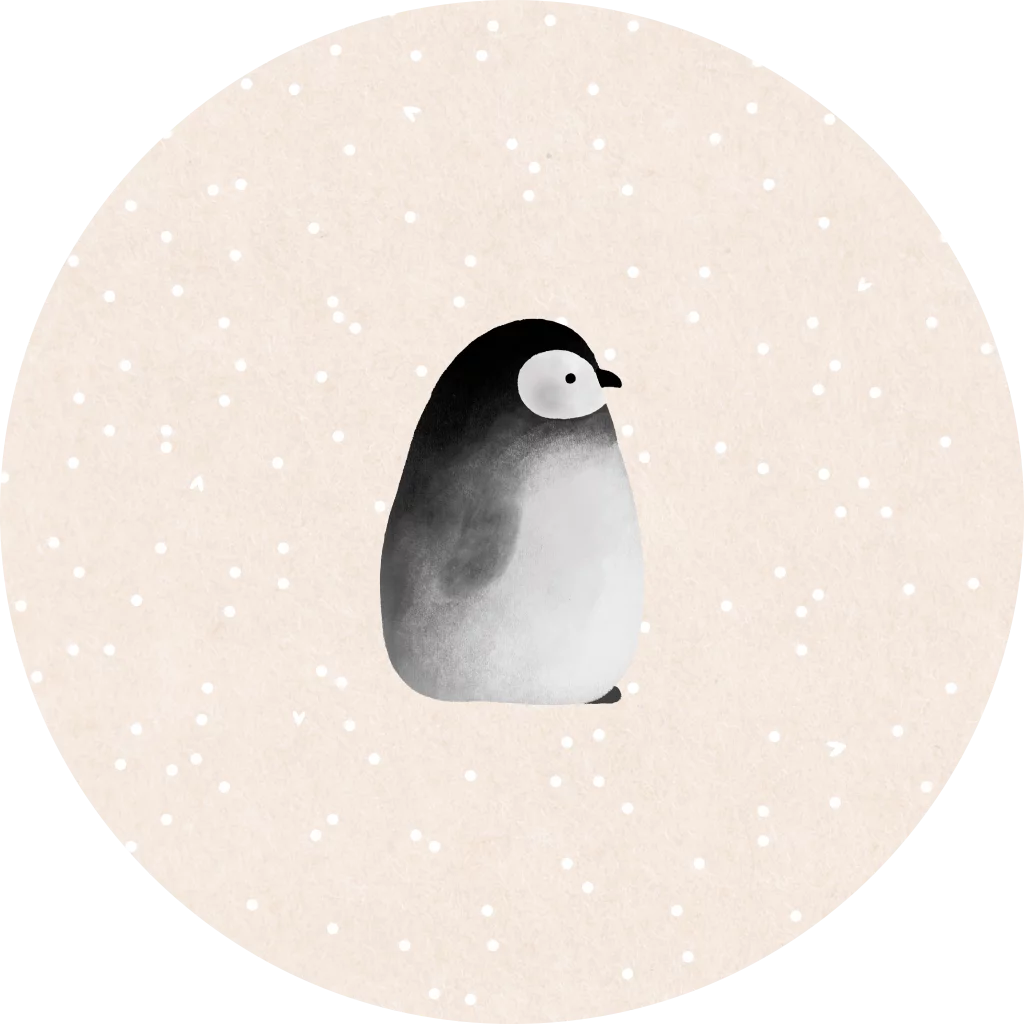Sluitsticker met een lichte achtergrond en een kleine pinguïn.