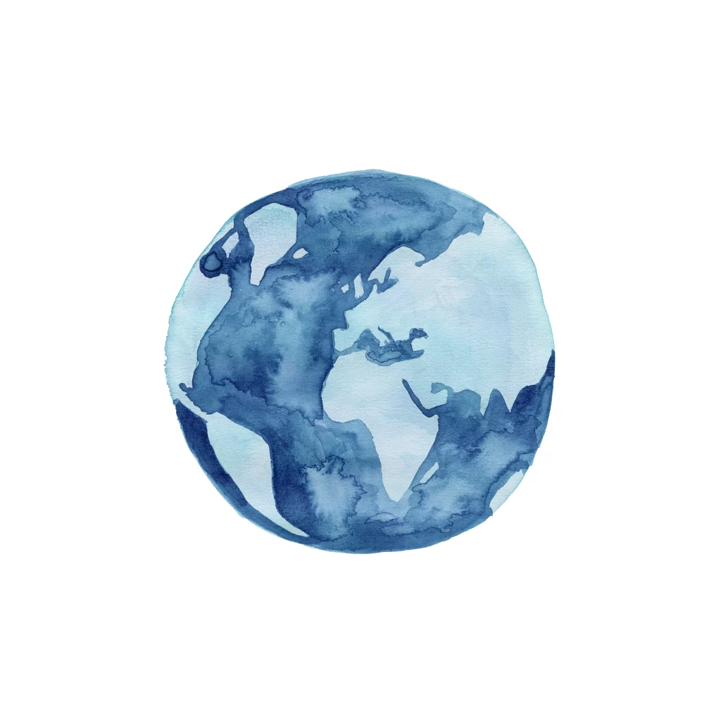 Sluitsticker met een waterverf wereldbol - vel met 25 stickers