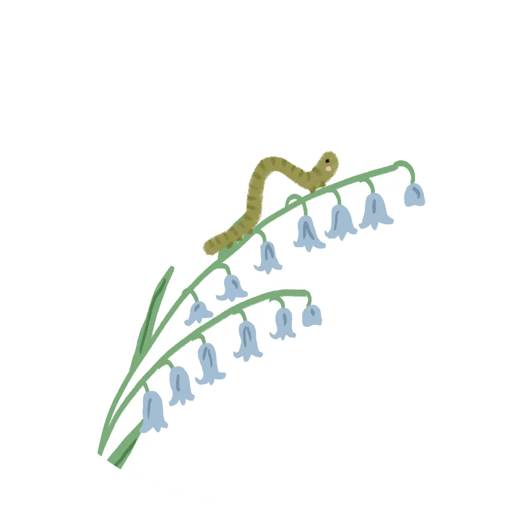Sluitzegel of doopsuiker stickertje met bloemen klokjes en een rups.