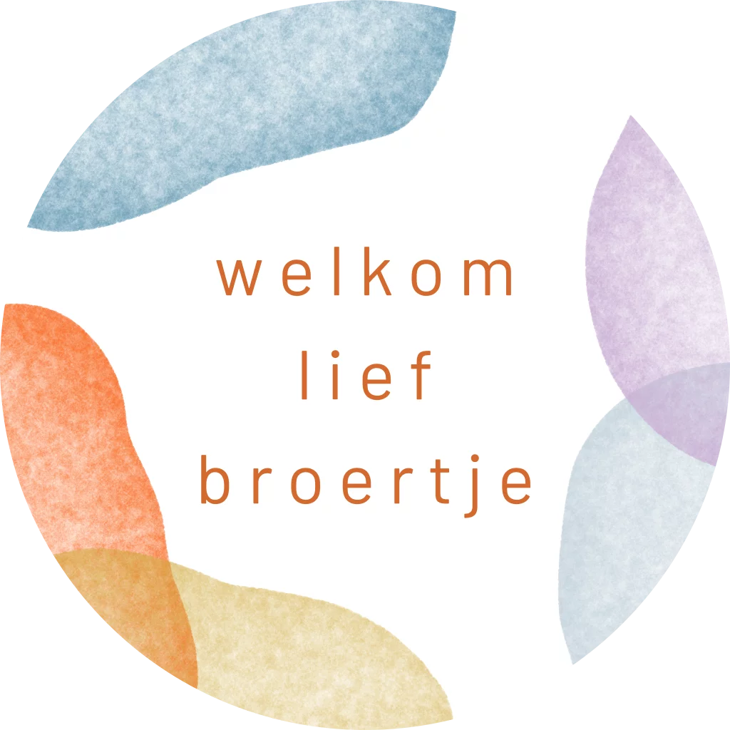 Sluitzegel met gekleurde vlakken en 'welkom lief broertje' tekst.