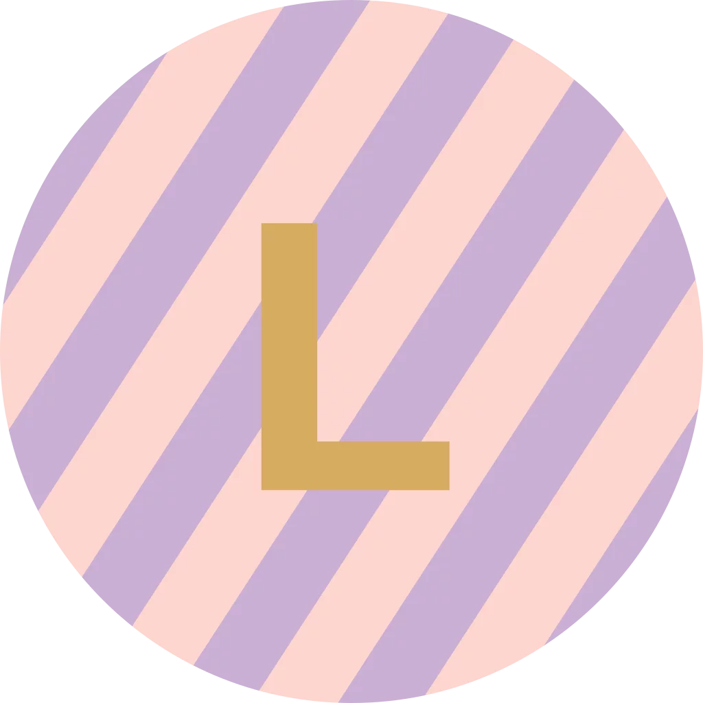 Sluitzegel met paars roze strepen en een letter - vel met 25 stickers