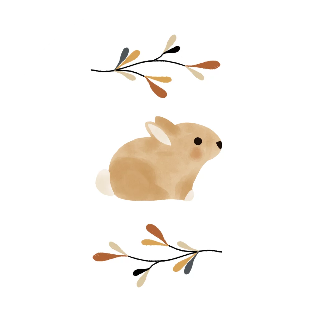 Sluitzegel met een klein baby konijntje en bruin gele blaadjes.