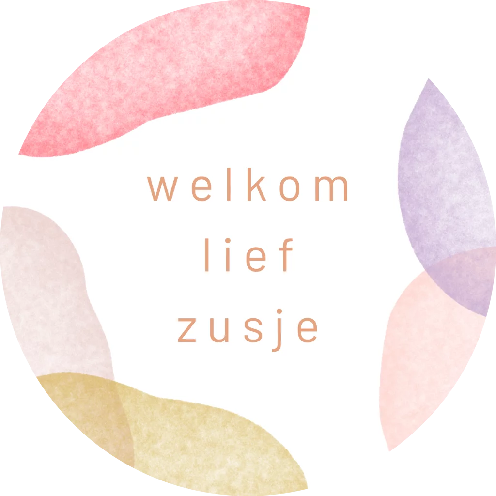 Sluitzegel met gekleurde vlakken en 'welkom lief zusje' tekst - vel met 25 stickers