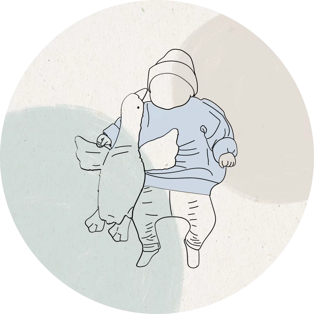Sluitzegel of doopsuiker stickertje met een lijntekening van een baby met een knuffel gans.