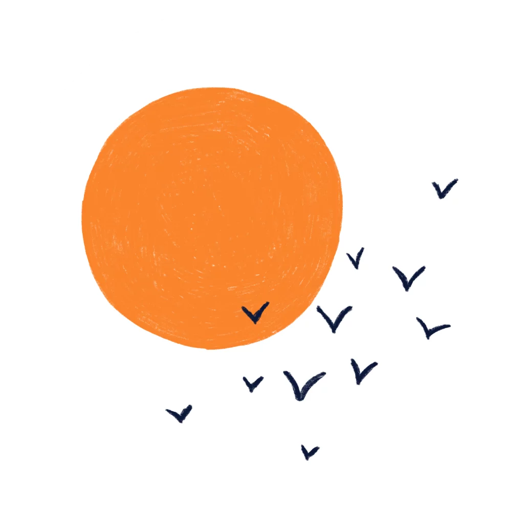Sluitzegel met een oranje zon en vliegende vogels - vel met 25 stickers