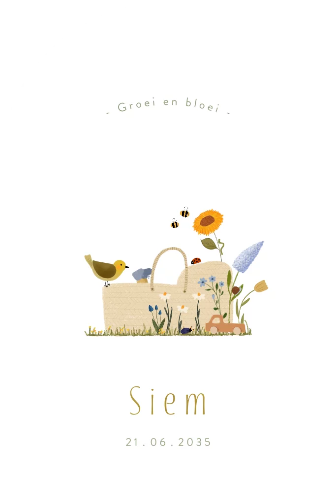 Heb je een klein wondertje op de wereld gezet en ben je op zoek naar een uniek geboortekaartje? Dan is dit stanskaartje met goudfolie, een reiswiegje, bloemen en beestjes echt iets voor jou! Dit kaartje is niet alleen origineel, maar ook luxe door de goudfolie.