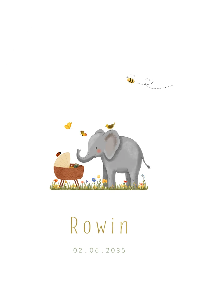 Heb je een klein wondertje op de wereld gezet en ben je op zoek naar een uniek en vrolijk geboortekaartje? Dan is dit stanskaartje met goudfolie, een wiegje, bloemen, vlinders, een bijtje, een vogeltje en olifantje echt iets voor jou! Dit kaartje is niet alleen origineel, maar ook luxe door de goudfolie.