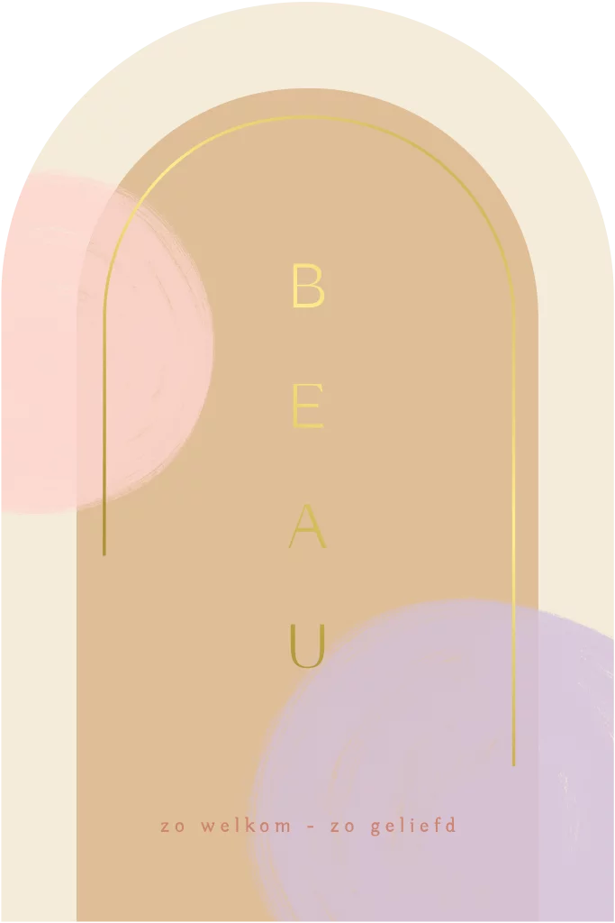 Gestanst geboortekaartje in boog / arch vorm met goudfolie, een goudfolie arch-boog, cirkels. De goudfolie arch-boog geeft het kaartje een luxe uitstraling, terwijl de naam van jullie kindje verticaal op het kaartje staat, wat het kaartje een modern en stijlvol uiterlijk geeft.