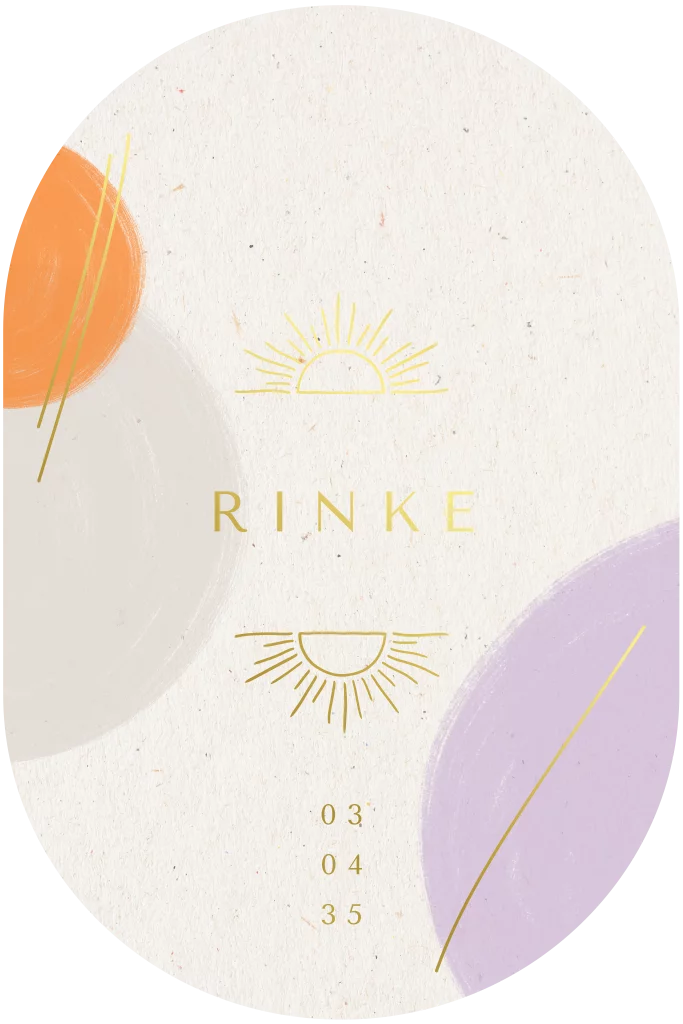 Ovalen stanskaartje met goudfolie zonnen en hippe kleuren