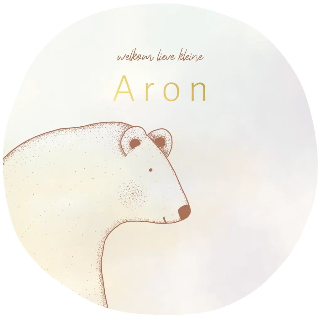 Vier de komst van jullie kleine wonder met dit prachtige geboortekaartje met een illustratie van een grote vriendelijke beer. De zachte pastelkleuren op de achtergrond en de naam die zowel op de voor- als de achterkant van het kaartje in goudfolie prijkt, geven het een extra vleugje elegantie.