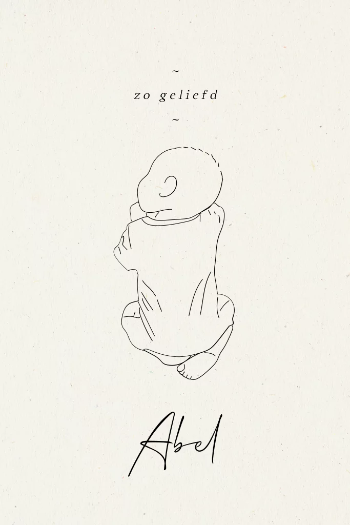 Enkel staand geboortekaartje met een lijntekening van een baby.