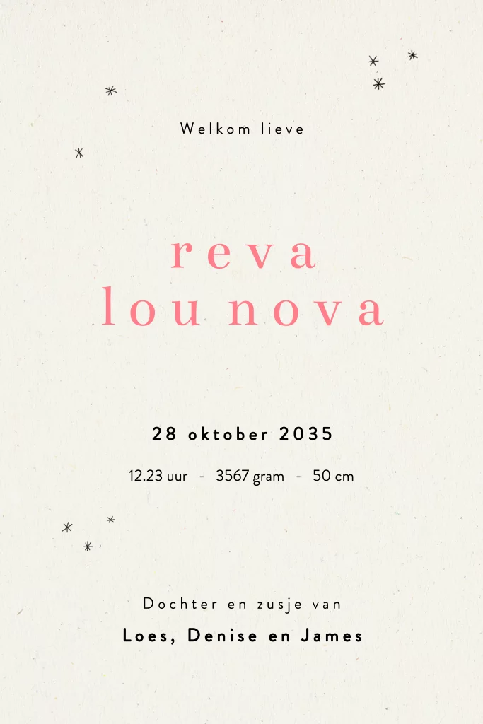 Dit kaartje wordt gedrukt op duurzaam eco papier. De papiersoort is een beetje gelig van kleur en er zitten zichtbare zwarte vezeltjes in.