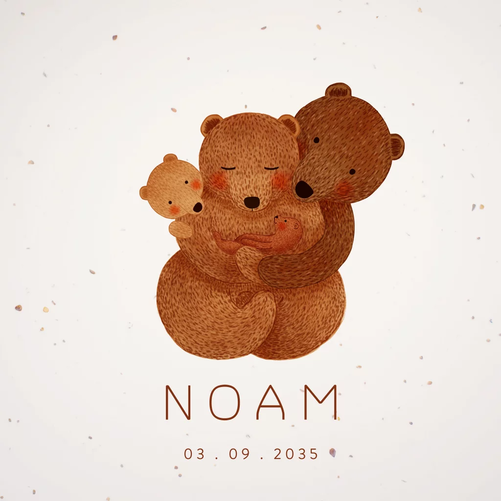 Dit eco-vriendelijke kaartje is gemaakt van circulair tulpenbollen papier, waardoor het niet alleen mooi is, maar ook goed voor het milieu. De illustratie van de beren straalt warmte en liefde uit, perfect voor de aankondiging van de komst van jullie kleintje.