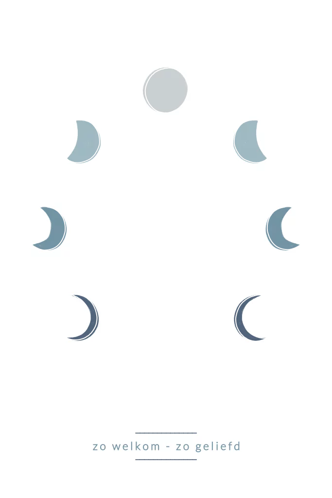 Enkel staand geboortekaartje met maanstanden en goudfolie.