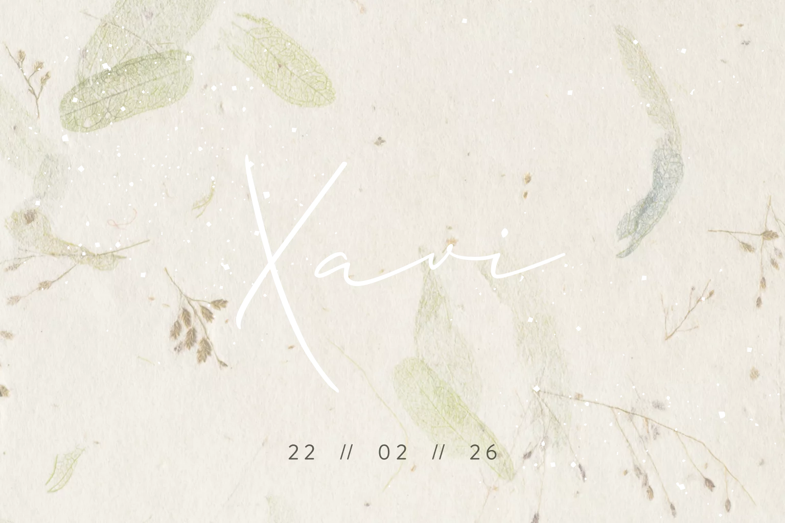 Geboortekaartje met een blaadjes-papier-look achtergrond, ronde hoeken en goudfolie.