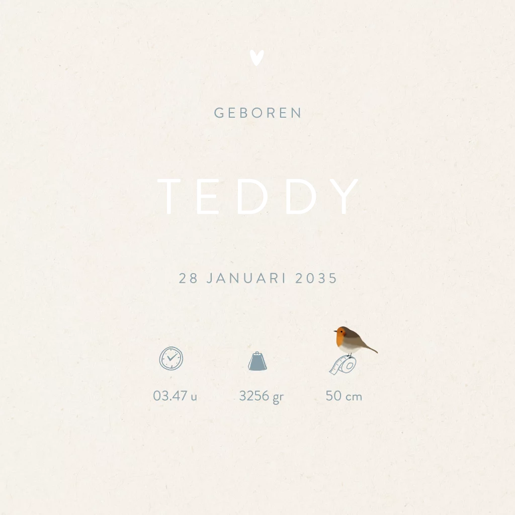 Pas de tekst van het kaartje aan, en eventueel het lettertype of de foliekleur en maak er zo jullie eigen persoonlijke geboortekaartje van.