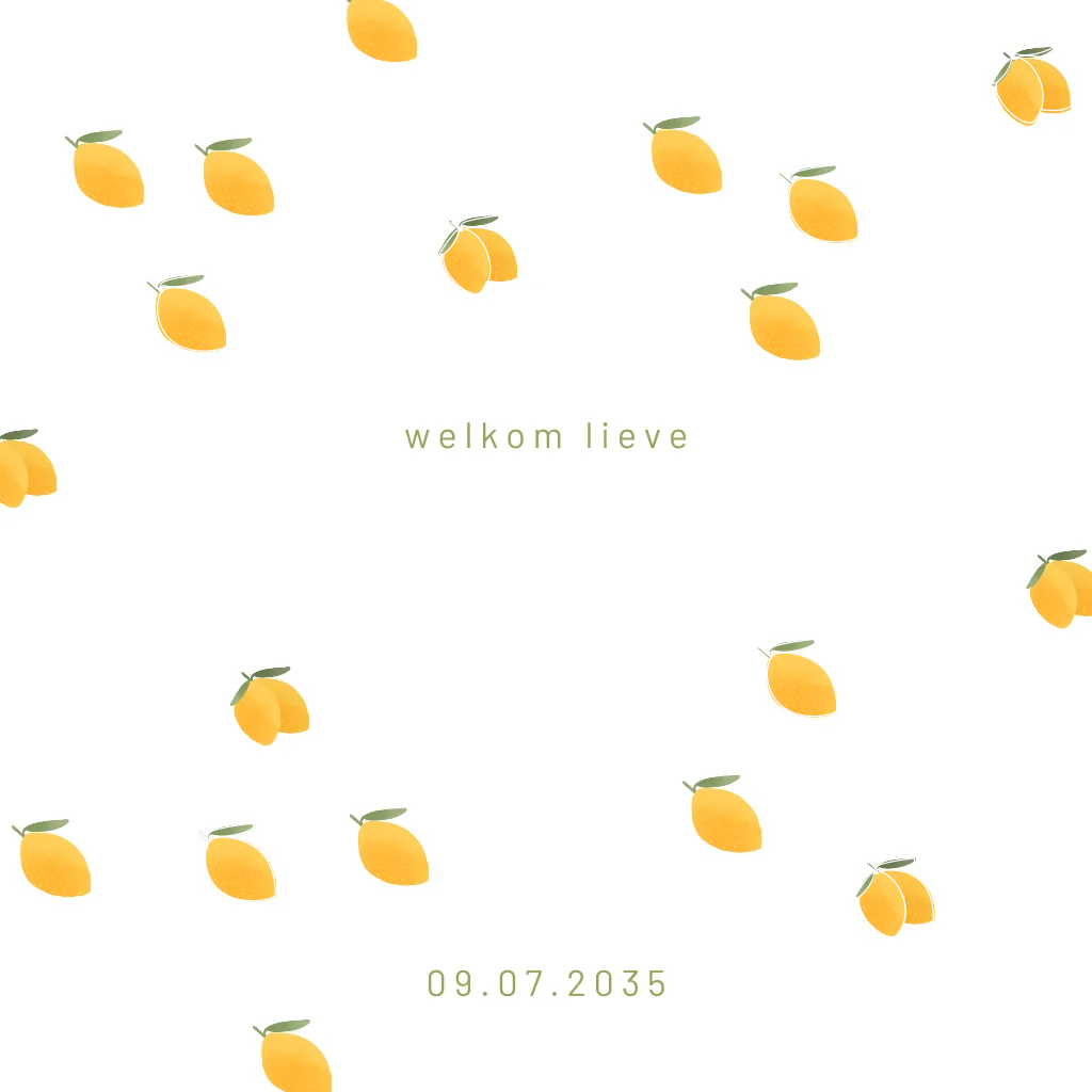 Pas dit fruit geboortekaartje in de editor aan naar je eigen wensen door bijvoorbeeld de achtergrondkleur, het lettertype of de foliekleur te veranderen.