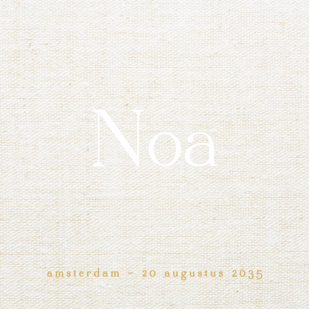 Geboortekaartje met linnen-look achtergrond, goudfolie en ronde hoeken