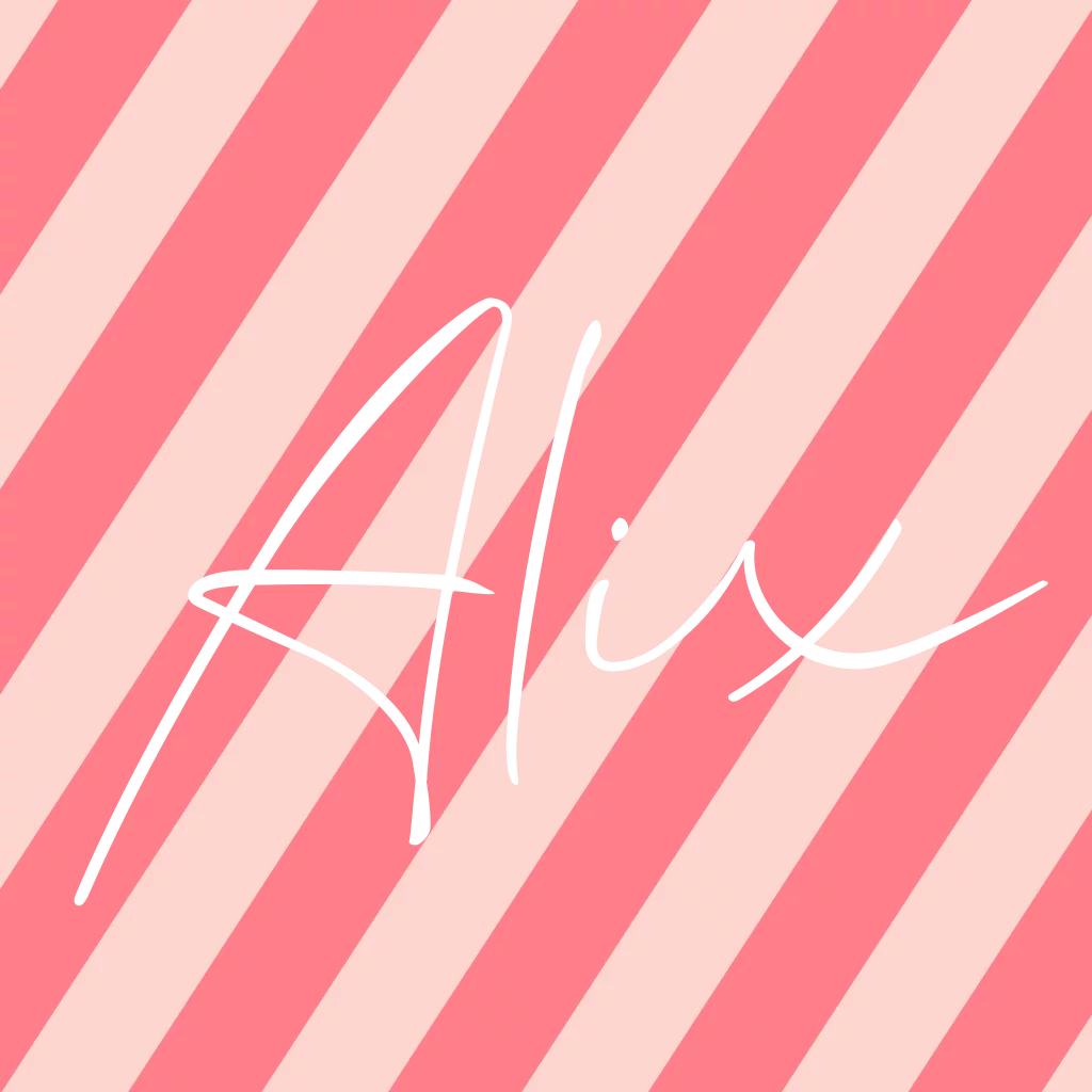 Vierkant geboortekaartje met diagonale gekleurde lijnen - zachtroze en warmroze - en de naam op de voorkant van het geboortekaartje in holografische folie.