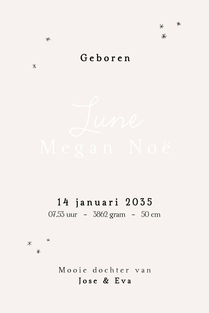 Kom je er niet helemaal uit, of vind je het fijn dat we met jullie meedenken over de opmaak van het geboortekaartje, stuur ons dan gerust een mailtje.