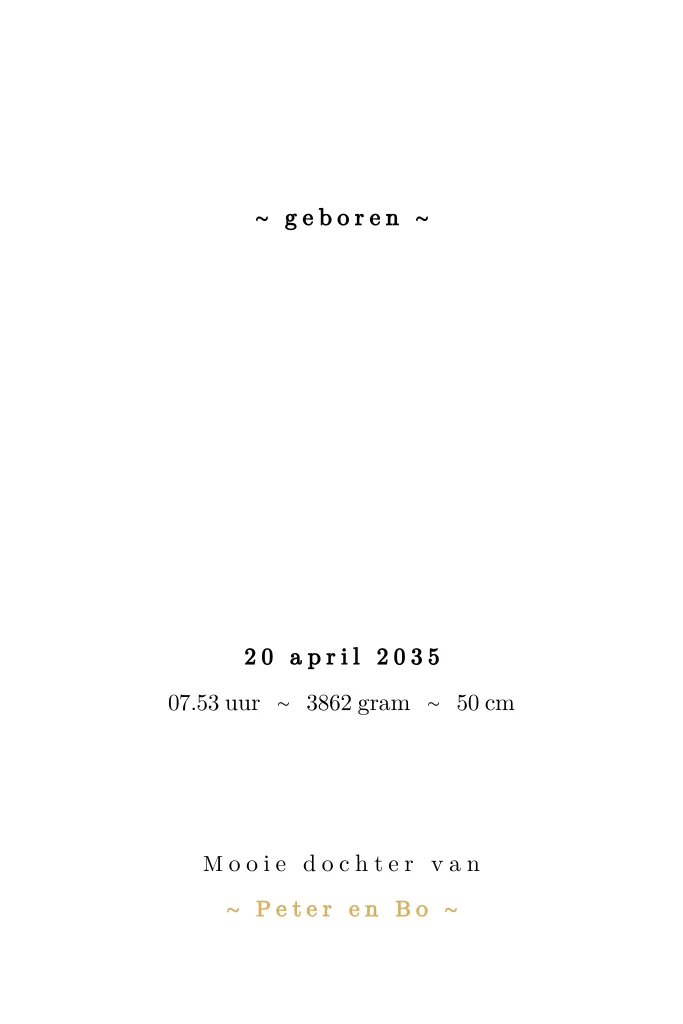 Kom je er niet helemaal uit, of vind je het fijn dat ik met jullie meedenk over de opmaak van het geboortekaartje, stuur mij dan gerust een mailtje.