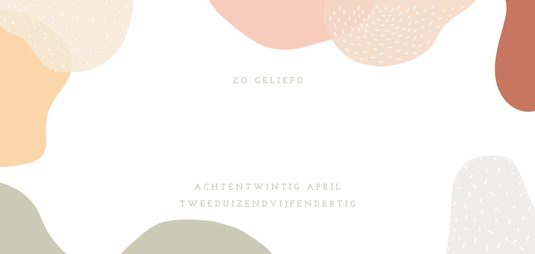 Modern langwerpig liggend geboortekaartje met kleurvlakken en goudfolie voor een meisje.
