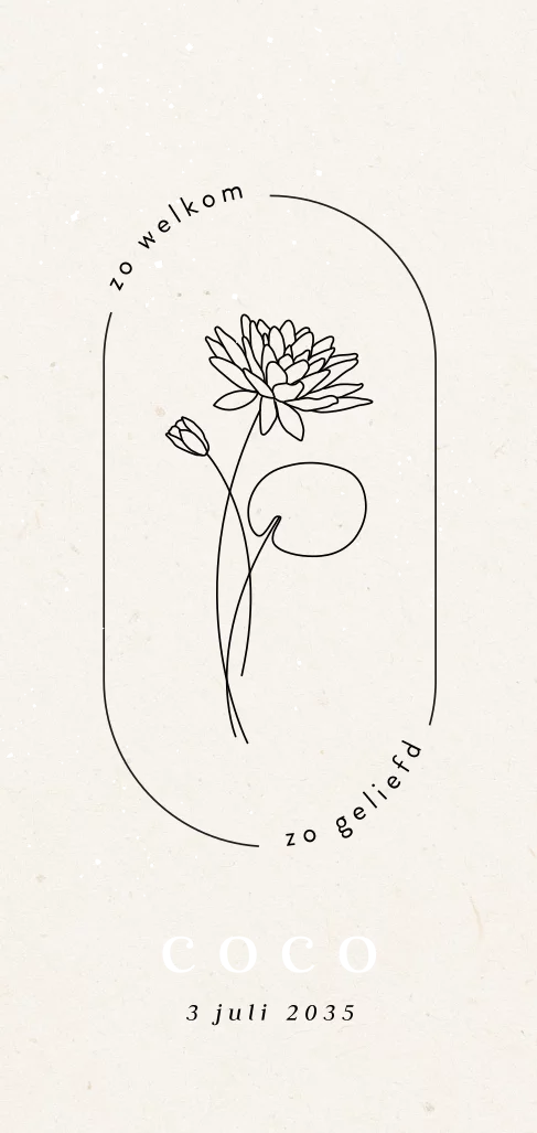Unisex geboortekaartje met een waterlelie geboortebloem