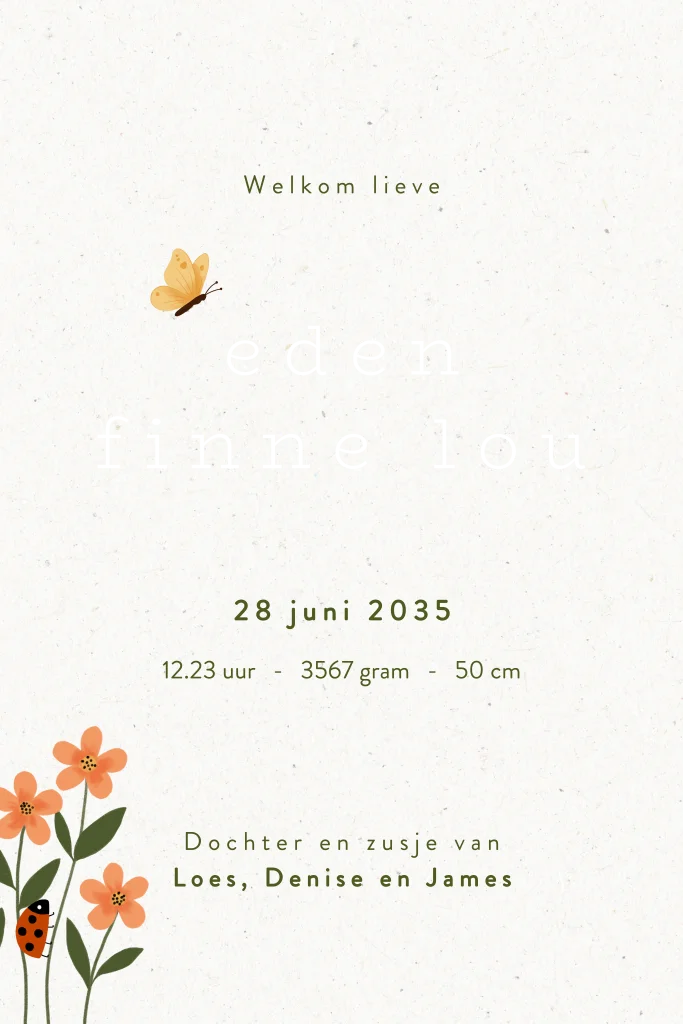 Kom je er niet helemaal uit, of vind je het fijn dat we met jullie meedenken over de opmaak van het geboortekaartje, stuur ons dan gerust een mailtje.