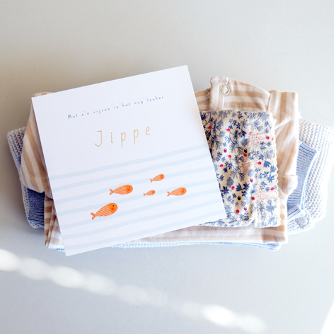 Het aantal visjes kan eenvoudig worden aangepast, waardoor het kaartje perfect aansluit bij jullie gezinssamenstelling, of jullie nu een tweede of vierde kindje verwachten. En heb je een vraag, stuur dan gerust een mailtje naar info@blauw-roze.nl.