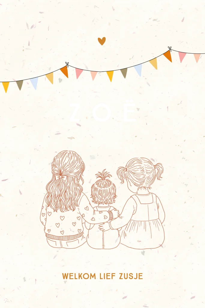 Lief geboortekaartje van twee grote zussen en een babyzusje.