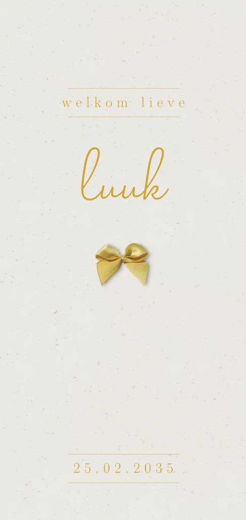 Geboortekaartje met ronde hoeken en een echt strikje.