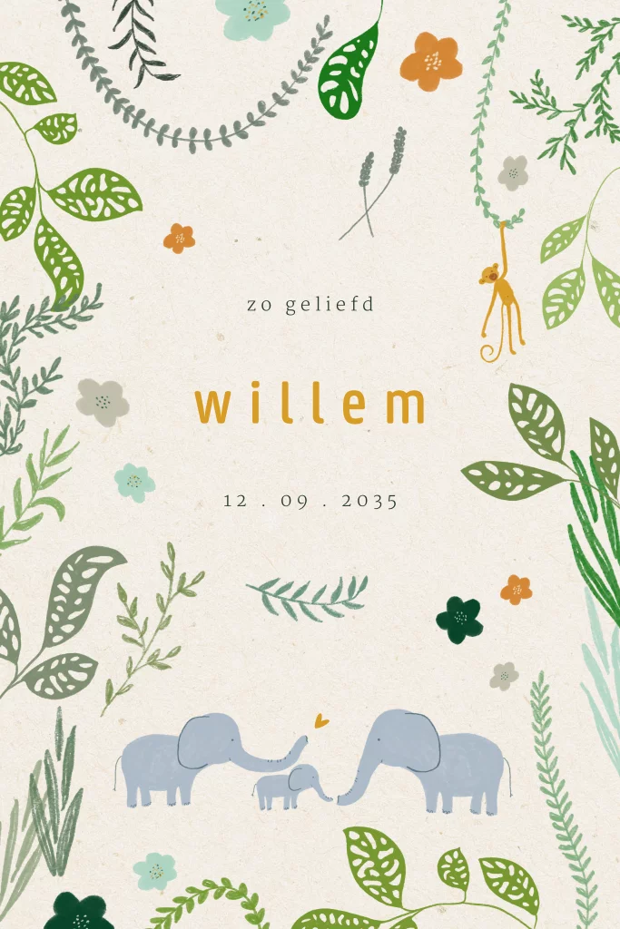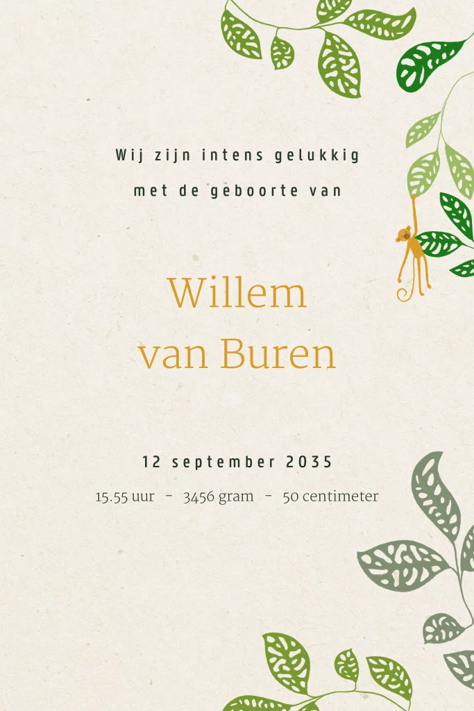 De afbeeldingen staan allemaal los, dus je kunt er helemaal je eigen persoonlijke jungle geboortekaartje van maken!