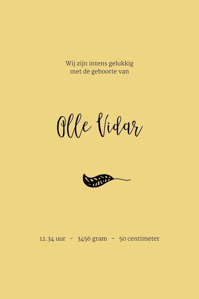 Lief geboortekaartje met een olifantje, blaadjes, de maan en sterren.