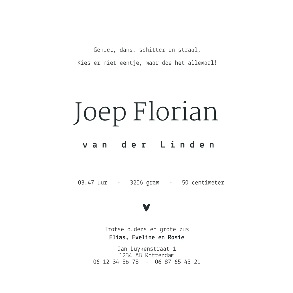 Pas het kaartje aan in de editor en maak er hét geboortekaartje van voor jullie kindje!